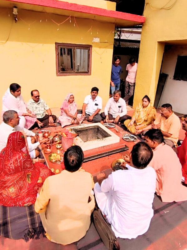 Performing a sacred fire ritual to seek blessings for various aspects of life.